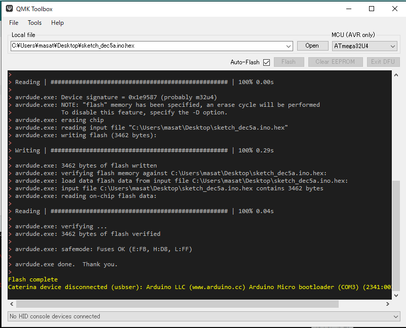 次に、QMK Toolboxをダウンロードし、上の使用方法に則って、ツールを使用します。